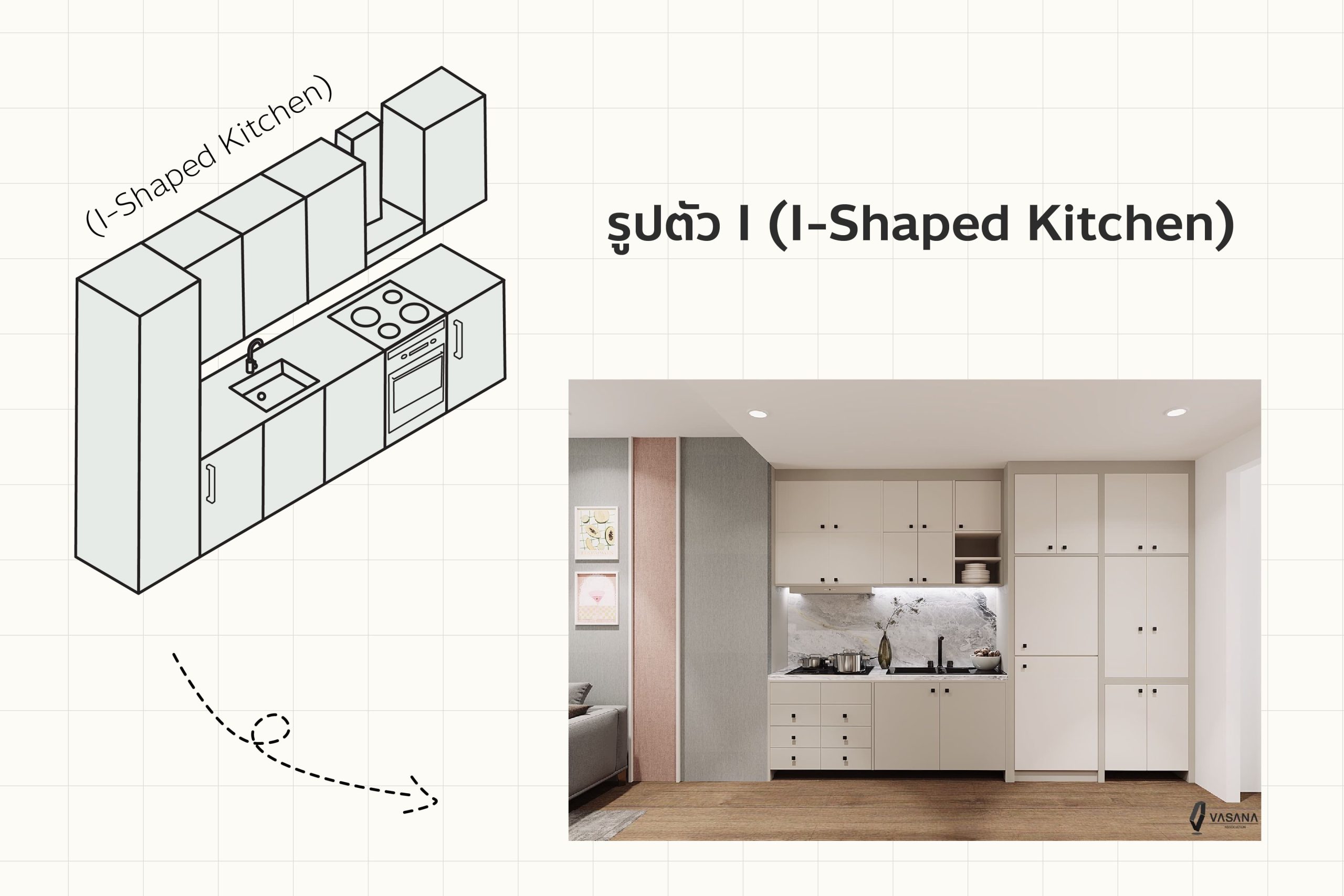 1. การจัดวางแบบ รูปตัว I (I-Shaped Kitchen)