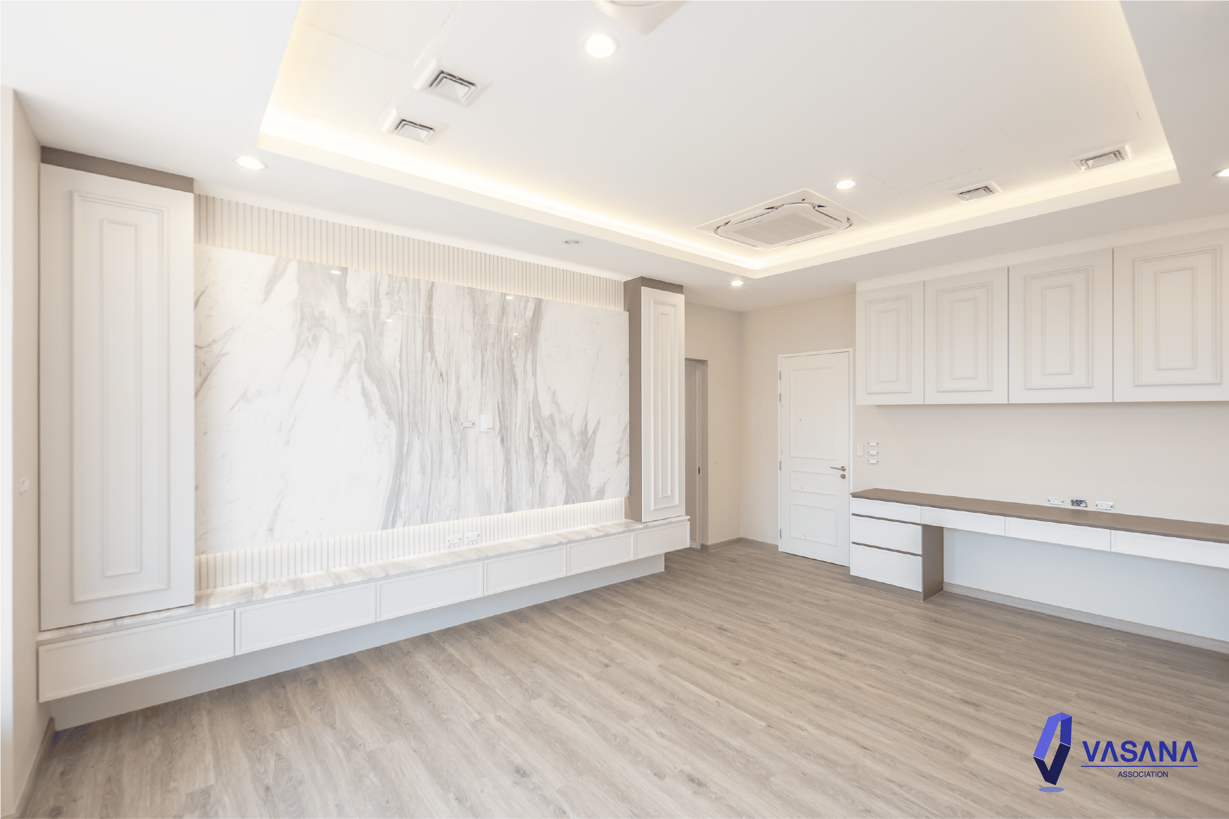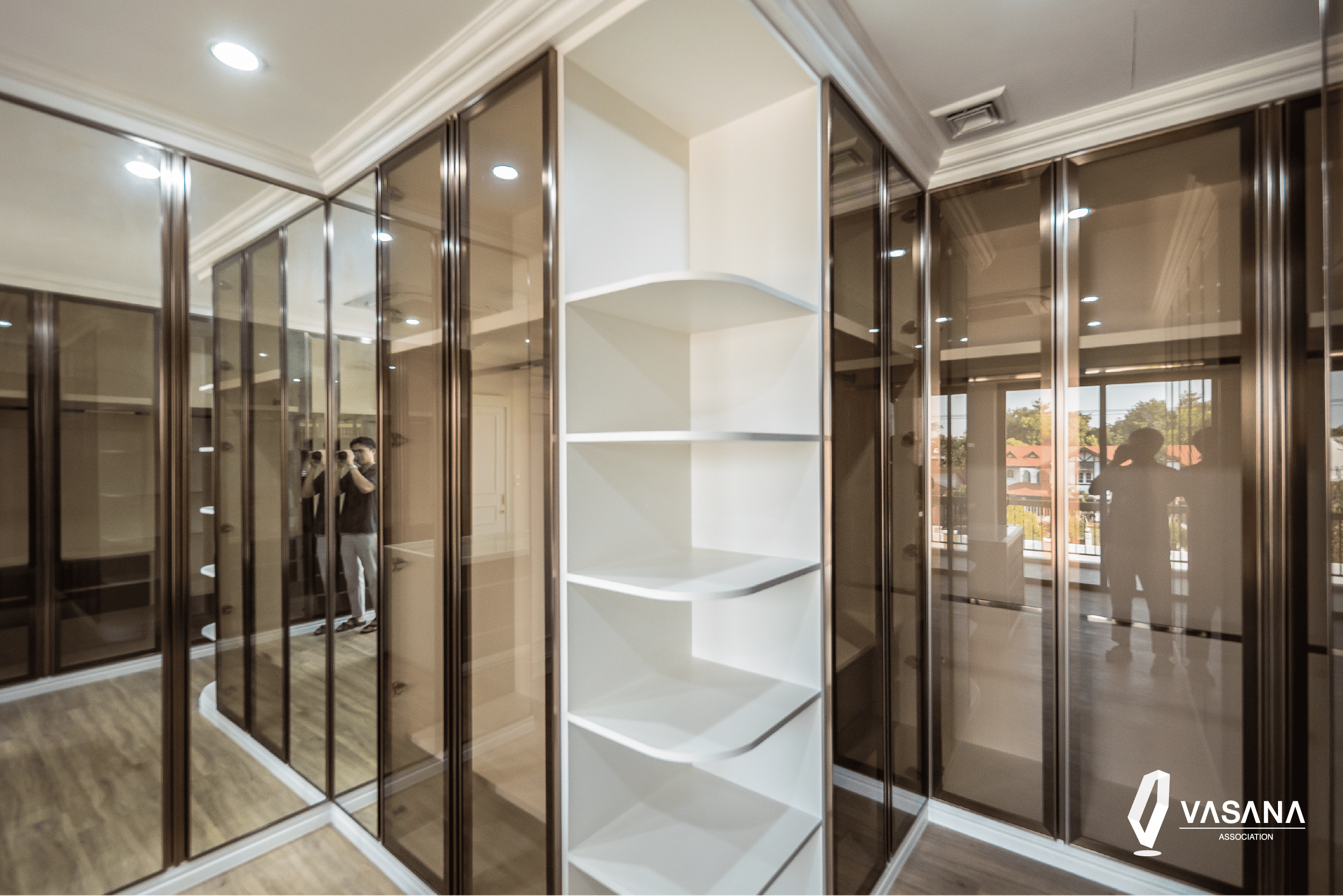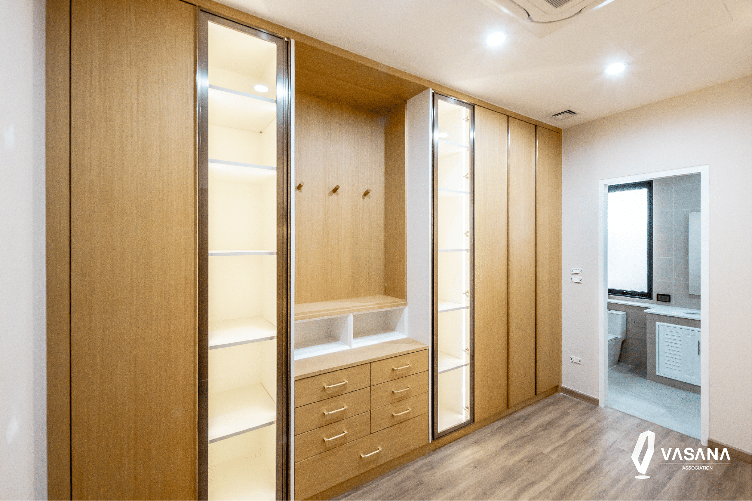 ในส่วนของห้องนอนมีทั้งห้องที่เป็นงานไม้เหมือนกับสไตล์มินิมอล-มูจิ หรือการตกแต่งแบบ Classic ที่มีคิ้วบัว และห้องนอนพร้อมห้องแต่งตัวที่มีความ Luxury ทั้งหมดถูกออกแบบตกแต่งให้เข้ากันได้พอดี